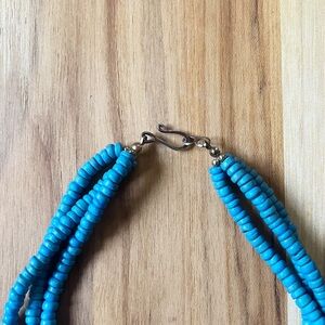 VINTAGE Blue Wooden Bead Necklace with Hand-Painted Fish