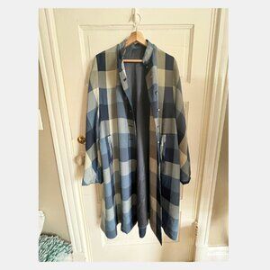 VINTAGE - Blue and Cream Checkered Drape Coat