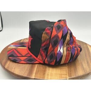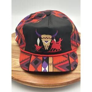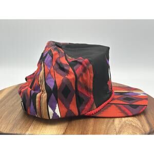 Design/Style: Southwestern prints with bold geometric/aztec patterns and western motifs; black front crown with embroidery; structured crown with flat/semiflat bill.