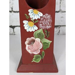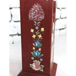 VINTAGE Boho Cottage Hand Painted Floral Fireplace Wooden Match Holder