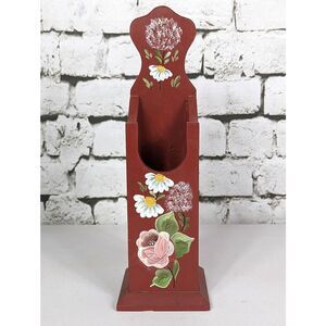 VINTAGE Boho Cottage Rustic Hand Painted Floral Fireplace Wooden Match Holder