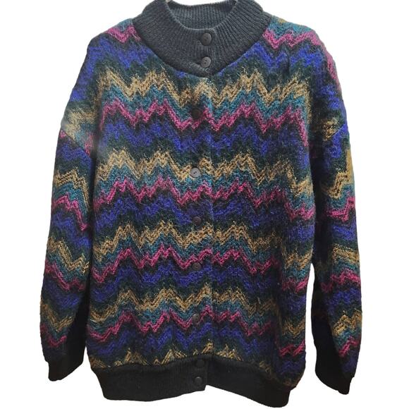 Vintage Boundary Waters button-up sweater with shoulder pads! Multi-color. In good condtion.
