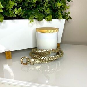 Beautiful vintage distressed metallic braided leather. A cute addition to any outfit. 1/2” wide