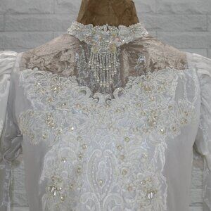 VINTAGE Bridal Gown Petite Wedding Dress Pearls Layers Ruffles White Flowergirl