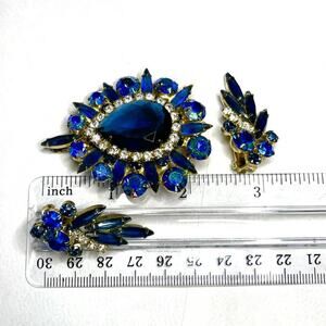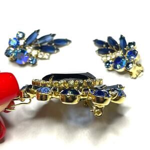 VINTAGE Brooch Earrings Juliana Set Blue Rhinestone Vtg Jewelry JU20