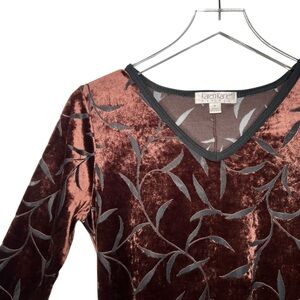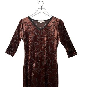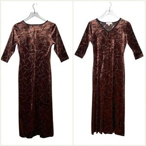 VINTAGE Brown Velvet Burnout 90s V Women’s Witchy Whimsigoth Midi Dress Sz S