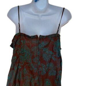 VINTAGE Brown and Turquoise Blue Summer Cotton Dress Size 13