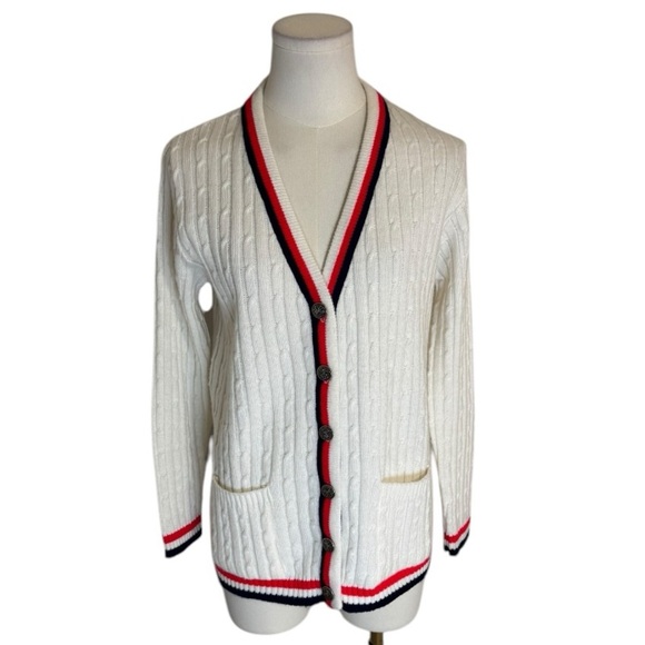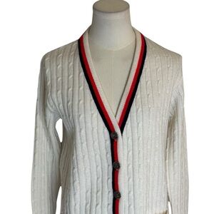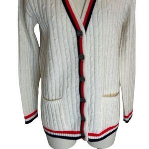 VINTAGE Brownstone Studio Red White Blue Preppy Cardigan Cable Knit Sweater Sz M