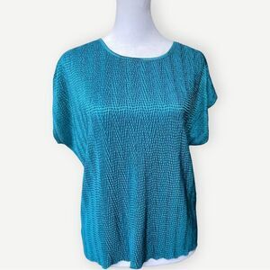 VINTAGE Bundle of 2 Lana Lee Blue & Orange 90s Short Sleeve Textured Tops. Large