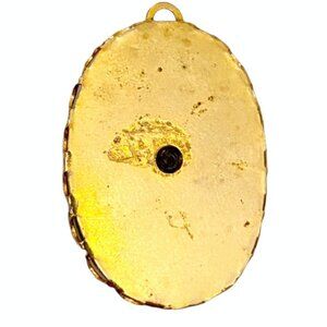 Vintage Oval Gold Tone Golden Brown And White Woman's Portrait Cameo Brooch