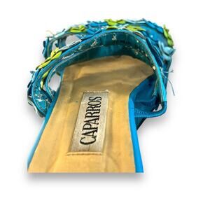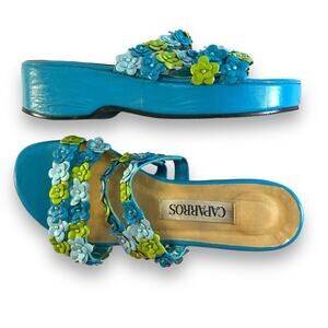 VINTAGE CAPARROS Turquoise Lime Floral and Bead Slide Platform Sandals