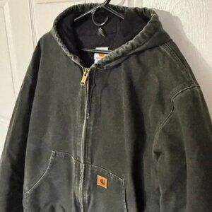 VINTAGE CARHARTT J130 MOS Moss Green Hooded Men's Jacket Workwear Size XXL