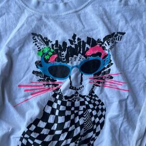 VINTAGE CAT WHISKER SWEATSHIRT 80s RETRO CREWNECK MENS LARGE WHITE USA