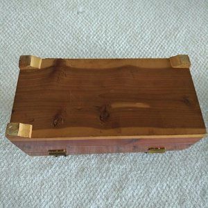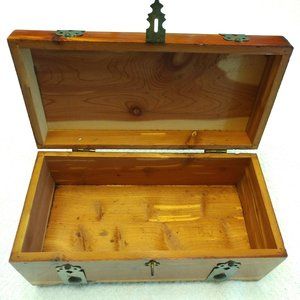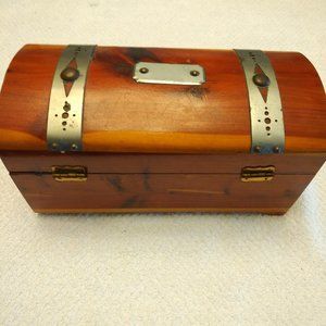 VINTAGE CEDAR JEWELRY CHEST WITH METAL STRAPS