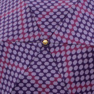 CELINE PRINTED UMBRELLA COLOR: PURPLE/PINK FEATURES: UMBRELLA COVER, WOODEN HANDLE, GOLD HARDWARE MEASUREMENTS WHEN FOLDED: LENGTH: 15.5” CONDITION: BRAND NEW WITH TAGS FLAWS: NO SIGNS OF WEAR DESIGNER: CELINE