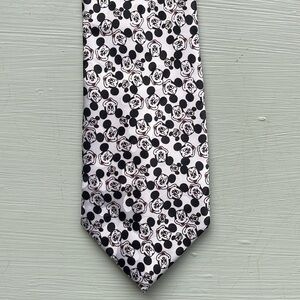 STYLE: Vintage Cervantes mickey mouse tie, black and white design with pattern in back (polka dots etc), 100% polyester