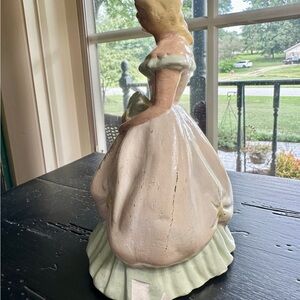 VINTAGE, CHALKWARE SOUTHERN BELLE FIGURINE. APPEARS TO BE SOLID.