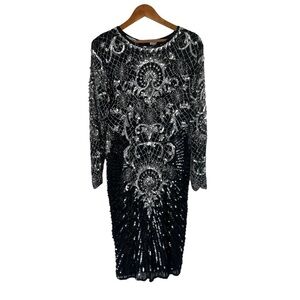 VINTAGE CHAMPELLYSE Great Gatsby Beaded Cocktail Long Sleeve Midi Dress