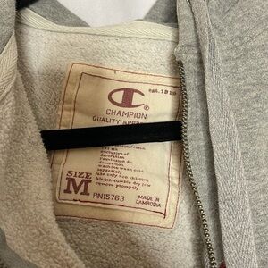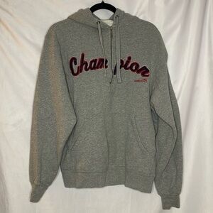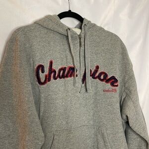 STYLE: Vintage Champion quarter zip, embroidered name logo, has hood!