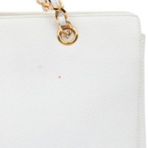 VINTAGE CHANEL White Caviar Leather Bag from 1997-1999 - Authentic!