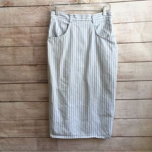 EXCELLENT CONDITION VINTAGE CHEROKEE DENIM SKIRT IN BLUE AND WHITE STRIPES