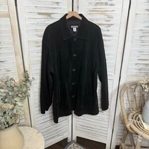 - VINTAGE CHEROKEE Men's Size XL 90s Long Suede Leather Button Jacket Coat Black -