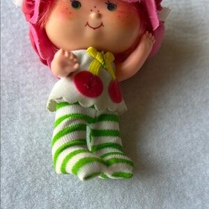 Vintage Cherry Cuddler doll with Gooseberry Goose. Kenner's second issue Strawberry Shortcake dolls with their pets.1981. This doll is in good used condition but no longer retains its original scent. This doll still has the original t-bar tag fastener in its hat to keep the hat secure on its head. Comes in original clothing with pink fabric shoes. Please note: clothing has not been removed, cleaned or repaired. There could be some minor spots or flaws. Please feel free to ask questions or for more photos before purchase. Measures approximately 4”tall. The plastic face and body are all in good condition and the arms, legs and head are movable. It comes with Gooseberry Goose which is a soft plastic and is in good condition. No box. Made in Hong Kong.