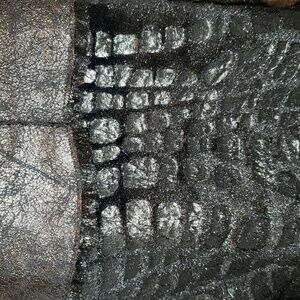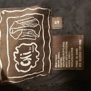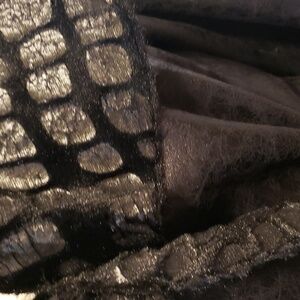 vintage jacket. in like new condition. size small. one size has a animal stamped faux fur the other side is a crackle like leather. has adjustable ties in front. large almost cape like collar. sleeves have a bell effect. this is diffently a statement piece.