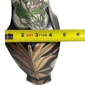 This Vintage Chinese Famille Rose Porcelain Vase features a black background with a design of lotus flowers, showcasing traditional Chinese craftsmanship. Made of porcelain and pottery, this vintage original piece from China is a unique and timeless addition to any collection. The intricate detailing and post-1940 age add to its historical and cultural significance, making it a valuable antique for enthusiasts of Asian antiques and vintage decor.