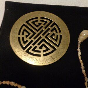 VINTAGE CHINESE STAND OR HANGING PLUS 2 VINTAGE SHELL NECKLACES LOT. THIS IS SUCH A PRETTY AND NICE LOT. WE DO NOT BREAK UP LOTS NOR BUNDLES. ALL ITEMS ARE VINTAGE. ALL ITEMS HAVE WEAR SOME MORE THAN OTHERS. ENJOY THE GOODIES. P.S. WE HAVE ON OTHER WONDERFUL VINTAGE ALL KINDS OF LOTS AT THIS TIME. TAKE A LOOK. 4TH GROUP. #640. THANKS