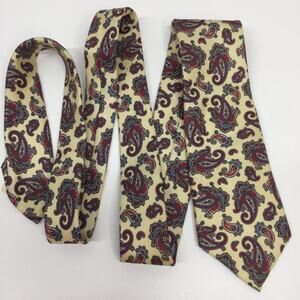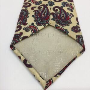 VINTAGE CHRISTIAN DIOR Cream Blue Red Paisley Silk Tie