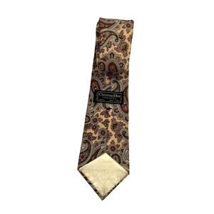 VINTAGE CHRISTIAN DIOR Neck Tie Silk Brown & Cream Paisley Yuppie Quiet Luxury