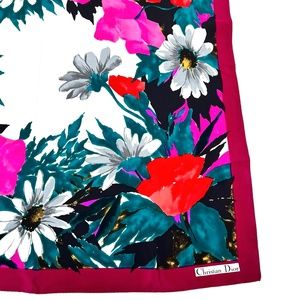 VINTAGE CHRISTIAN DIOR VIBRANT COLORFUL FLORAL SILK SCARF - 34" square