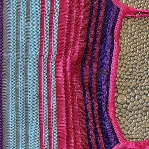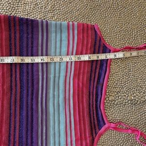 Authentic vintage hard to find one of the best French couture fashion houses, multicolored a little shimmery fabric, in very good condition like new, maybe wore it once some 10 yrs ago then I gained weight, fits size 8-12 because of stretch, I’m bra size 36C