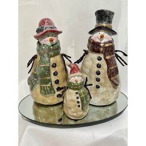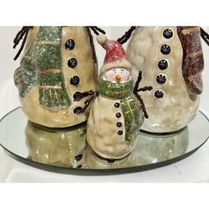 VINTAGE CHRISTMAS DECOR pottery SNOWMAN FAMILY W/ MIRROR HAND PAINTED Country