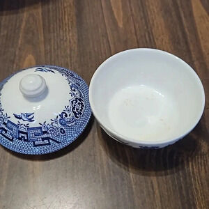 vintage Churchill willow blue and white sugar bowl