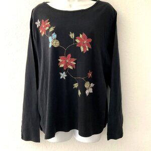 VINTAGE CJ BANKS POINSETTIA SHIRT BLACK