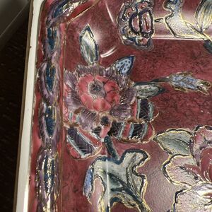 VINTAGE CLASSIC TRADITIONS SQUARE PLATE RED GOLD FLORAL DESIGN JCP