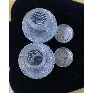 VINTAGE CLEAR GLASS HOBNAIL SALT & PEPPER SHAKERS "S" "P" Caps Vintage