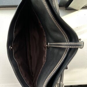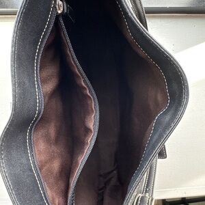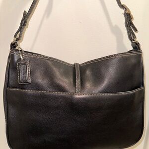 This bag is a beautiful vintage coach Hamptons bag (the og). I don't get much use out of her and really hope she finds a good home. I have cleaned and re-polished the leather as well as the interior of the bag. She comfortably fits a phone, a wallet, an iPad mini as well as a kindle and other trinkets.