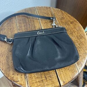 VINTAGE COACH BLACK PLEATED LEATHER WRISTLET POUCH BAG COIN PURSE
