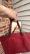 Elegant burgundy/cherry red leather satchels by Coach. Features chain straps and front zipper pocket. Comes with a removable cross body strap.