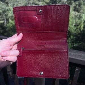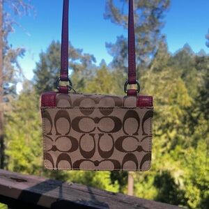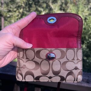 VINTAGE COACH Crossbody Purse Wallet w Turn Lock Khaki/Deep Red Silver Hardware