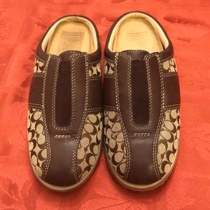 in extremely good condition, only worn a handful of times! Vintage coach slip on sneakers in women’s size 5.5 (original coach box they came in will be included)
