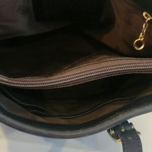 Vintage Y2K Coach black leather shoulderbag. The bag has double handles. There are 3 compartments. The center compartment has a zipper. There are 2 slide pockets & a zippered pocket. The hangtag is not attached. The bag is in great condition. Please see all pictures.