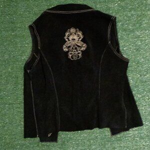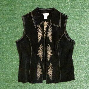 VINTAGE COLDWATER CREEK WOMENS BLACK LEATHER SUEDE EMBROIDERED FLORAL VEST SZ M