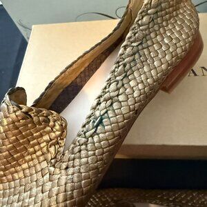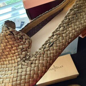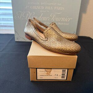 VINTAGE COLE HAAN WOVEN LOAFER, GOLD, 7.5B