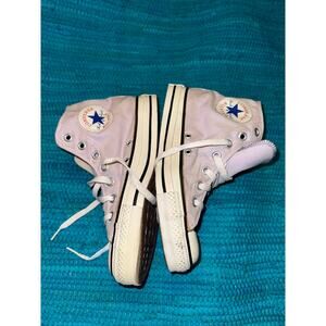 NEVER WORN TRUE VINTAGE EIGHTIES CONVERSE ALLSTAR HITOPS. THESE ARE MADE IN USA CHUCKS IN LAVENDER. SIZE IS MEN'S 5 OR WOMEN'S 7. NEVER WORN BUT THERE ARE SOME SIGNS OF STORAGE AS THEY ARE QUITE OLD (PLEASE SEE PHOTOS).