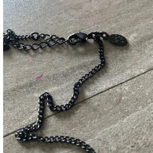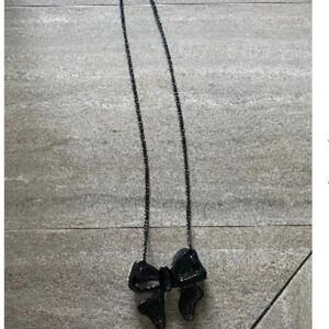 VINTAGE COOKIE LEE BLACK BOW PENDANT WITH CRYSTALS ON A BLACK CHAIN LOGO