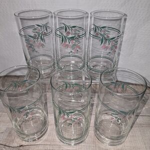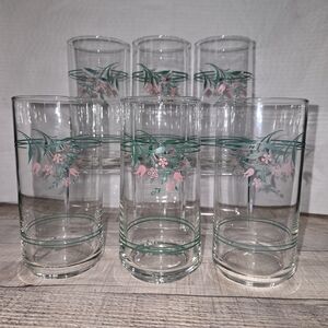 VINTAGE CORELLE DRINKING GLASS SET OF 6 ROSEMARIE TULIP PATTERN BY CORNING EUC